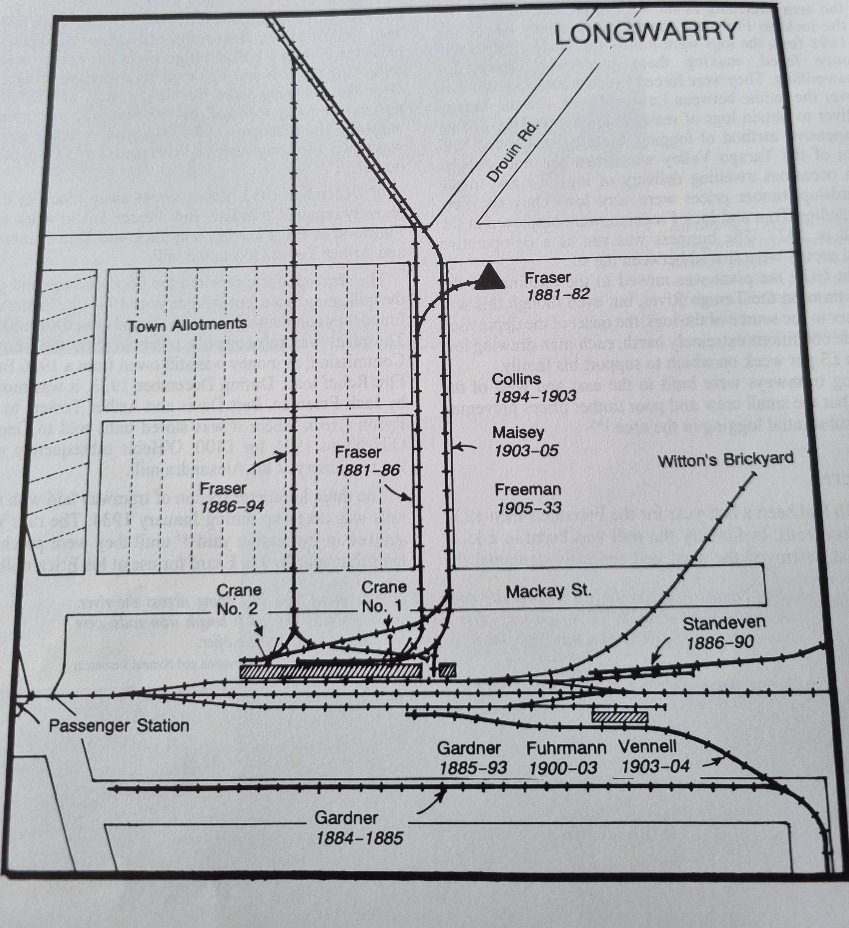 1881 – Fraser – Line laid to Mill 250 metres north of railway line.