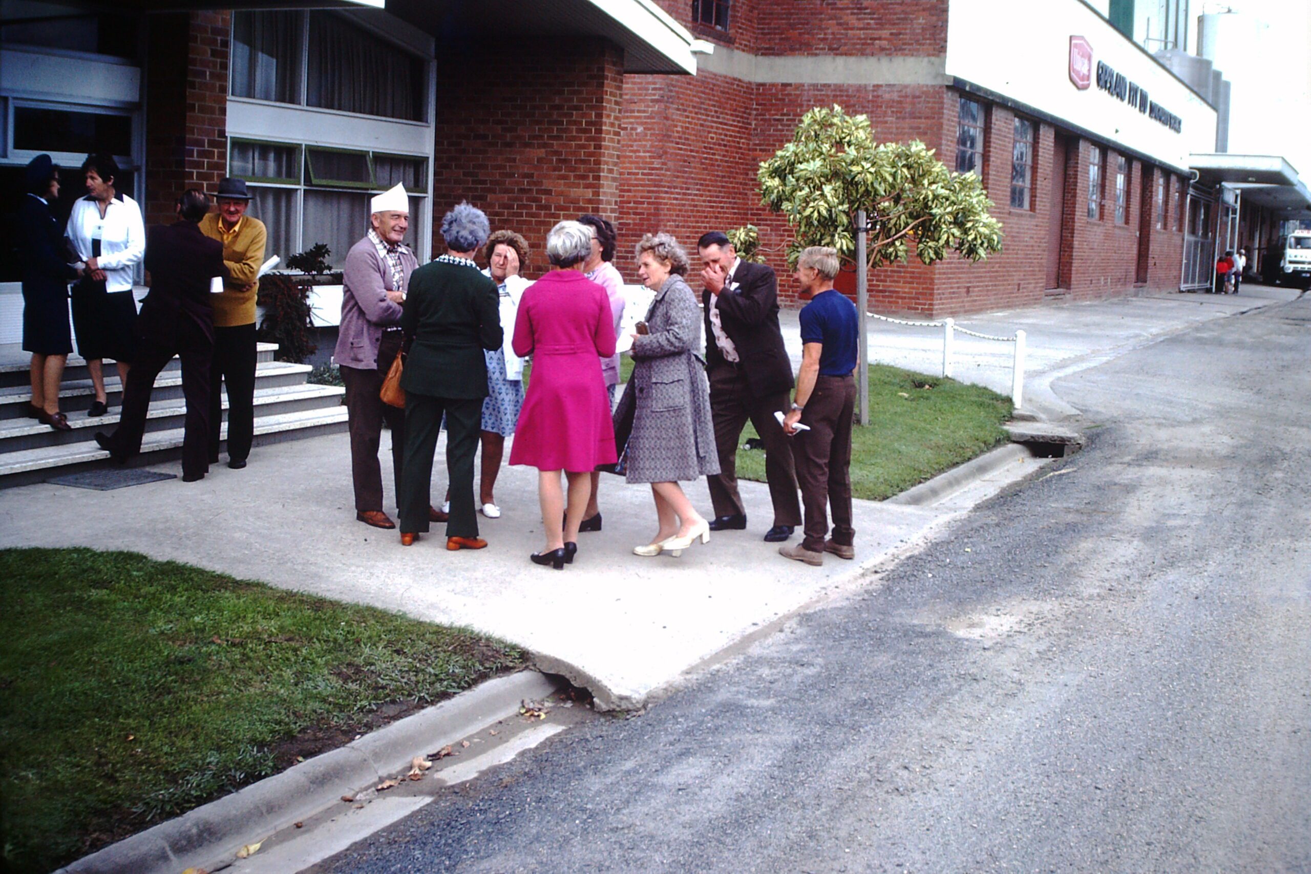 - 1978 Centenary, Pic courtesy J Berryman. We believe the lady in the grey coat with white shoes is Kathleen Damon, the gentleman with the white hat is Des Sadler, his wife is on his right and the lady with her hand to her head is Beryl Sharp.